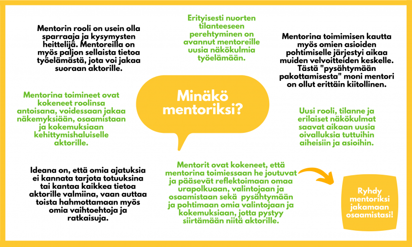 Ilmoita halukkuudestasi mentoriksi oheisen lomakkeen kautta.