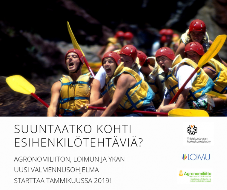 Valmentajina toimivat uravalmentajat, ura-asioiden päällikkö Heidi Hännikäinen (Agronomiliitto), urapalvelupäällikkö Suvi Liikkanen (Loimu) sekä osaamispalveluiden asiantuntija Heini Hult-Miekkavaara (YKA),