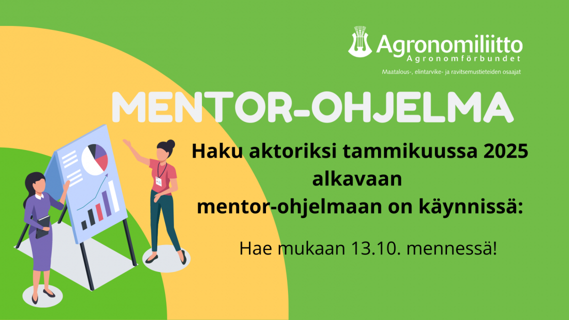 13.10.2024 23:59 MENTOR-OHJELMA soveltuu erityisesti opintojen loppuvaiheessa oleville, vastavalmistuneille tai muuten omaa osaamistaan pohtiville. Tule mukaan!