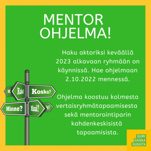 Haku keväällä 2023 alkavaan MENTOR-OHJELMAAN päättyy 2.10.2022. Ohjelmaan haetaan täyttämällä oheinen lomake.