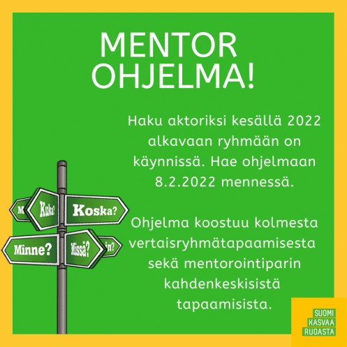 Haku kesäkuussa 2022 alkavaan MENTOR-OHJELMAAN päättyy 8.2.2022. Ohjelmaan haetaan täyttämällä oheinen lomake.