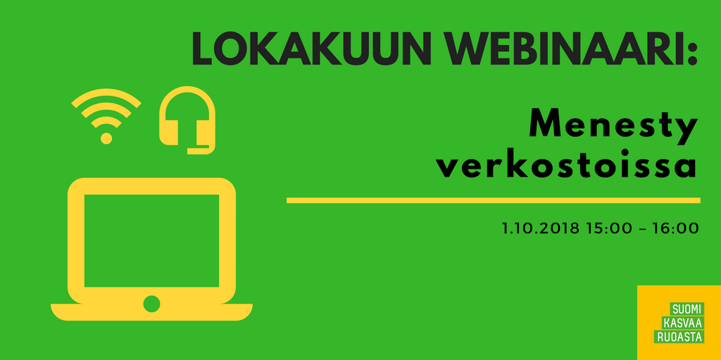 Ilmoittaudu jäsenille maksuttomaan tilaisuuteen viimeistään 26.9.2018 oheisen lomakkeen kautta. Webinaariin mahtuu 60 henkilöä ilmoittautumisjärjestyksessä. Mikäli ilmoittautuneita on alle 10 henkilöä, webinaaria ei järjestetä. Saat vahvistuksen toteutumisesta viimeisen ilmoittautumispäivän jälkeen.