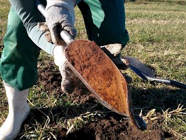 Sää suosi näytteenottajia ja fyysisen työn lisäksi pääsimme nauttimaan aurinkoisesta syyspäivästä. Noora esitteli näytteenottovälineet ja työskentelytavat, jonka jälkeen kaikki pääsivät hommiin. Maa oli melko helppoa ja mukavaa työstettävää: runsasmultaista karkeaa hietaa. Jaetut työtehtävät sujuvoittivat näytteenottoa ja kolmen ihmisen yhteistuumin tahti oli miellyttävän ripeä.