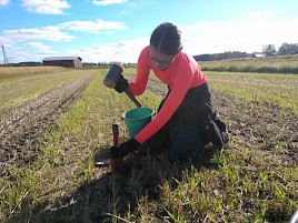 Aurinkoisena syyskuun aamuna lähdin kahden liiton jäsenen matkaan Helsingin yliopistolta Keski-Pohjanmaalle tutustumaan maanäytteenottoon sekä kenttäkokeeseen. Päivän tavoitteena oli ottaa maanäytteet maaperä- ja ympäristötieteen opiskelijalle Ilkka Olkkoselle, jonka pro gradu -työ liittyy valmisteilla olevaan MMM, agronomi Noora Mannisen väitöskirjatutkimukseen.