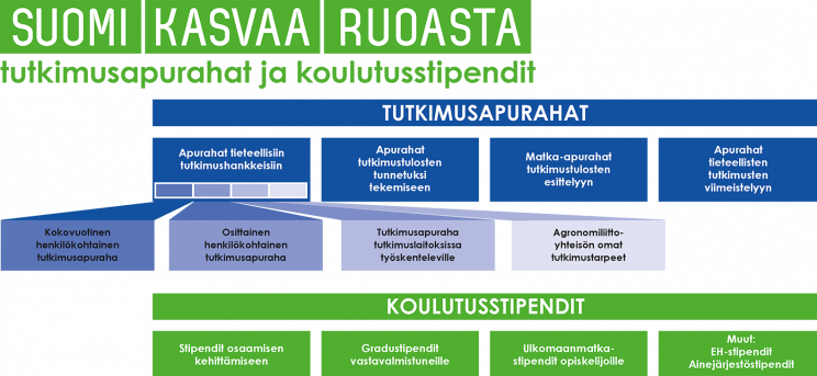 SUOMI KASVAA RUOASTA tutkimusapurahat ja koulutusstipendit on Agronomiliiton yhteydessä toimivien säätiöiden ja liiton yhteinen kokonaisuus.