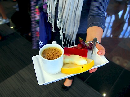 Kyseessä on tietysti Elintarvikepäivä, keväisin järjestettävä elintarvikealan seminaaripäivä Helsingin Messukeskuksessa. Aamu alkoi heti kello 8:00, kun pirteät vapaaehtoiset olivat vastaanottamassa vieraita aulassa. Tänä vuonna me opiskelijat olimme etuoikeutetussa asemassa, sillä opiskelijalippu oli onnistuttu neuvottelemaan aikaisempia vuosia huomattavasti edullisemmaksi, mikä mahdollisti osallistumisen matalalla kynnyksellä. Aamukahvien lomassa saatiin jo kiertää ensimmäiset ständit, joilta löytyi muun muassa tuttu ja turvallinen Agronomiliitto sekä VTT:n jännittäviä innovaatioita. Vielä tähän aikaan aamusta sen aina niin tärkeän verkostoitumisen sijaan aika kului turvallisesti pohtiessamme ystävän kanssa, mikä elintarvike valitaan päivän lopulla Vuoden suomalaiseksi elintarvikkeeksi. Vaihtoehdoissa ei meidän mielestämme tällä kertaa ollut yhtäkään niin selkeää voittajasuosikkia, kuin esimerkiksi viime vuonna Gold & Greenin Nyhtökaura oli.