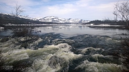 Tutkimusaseman pysäkillä jäi kolme henkeä pois. Kanssani tutkimusasemalle tuli toinen stipendiaatti, kirjallisuustieteen opiskelija Iida samasta yliopistosta sekä energian käyttöön liittyvää väitöskirjaa tekevä saksalainen Thomas. Olin tarkistanut paikallisen sään useaan otteeseen, mutta siitä huolimatta laikuttainen lumi ja jäässä oleva Kilpisjärvi hätkähdyttivät lämpötilan ollessa +15 astetta. Tutkijanhuoneeni oli todella tilava, ainakin kolme kertaa Rovaniemellä käyttämäni hotellihuoneen kokoinen. Ikkunastani näin tunturikoivikon ja Saana-tunturin, toisella puolella rakennusta avautui näkymä Kilpisjärvelle. Aurinko ei laskenut yöksi ollenkaan, joten myöhäiselläkin iltalenkillä kannatti kulkea aurinkolasit päässä.