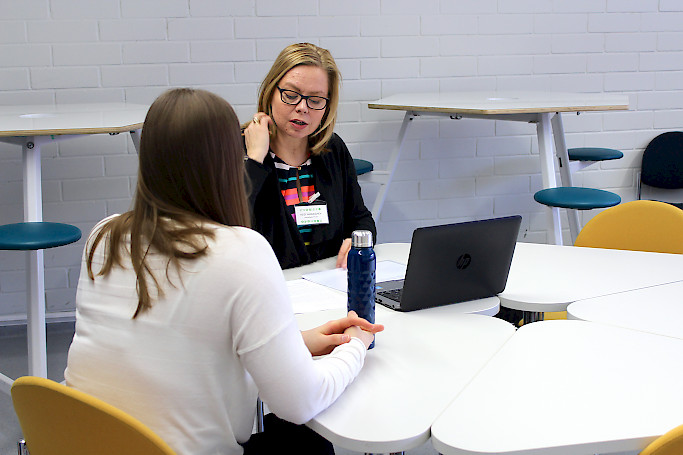 Aamupäivällä oli myös tarjolla henkilökohtaisia 15 minuutin mittaisia juttutuokioita Heidi Hännikäisen uraklinikalla. Klinikalle sai tulla harjoittelemaan työnhakua, kuulemaan palautetta omasta CV:stä ja työhakemuksesta tai vain yleisesti juttelemaan työelämää koskevista kysymyksistä.
