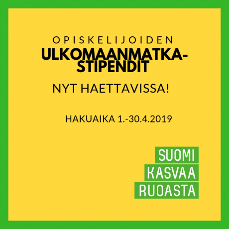 Stipendiä voi hakea ennen ulkomaanmatkaa tai takautuvasti matkan jälkeen. Stipendin suuruus määräytyy matkakohteen mukaan, ja hakuaikaa on huhtikuun loppuun. Kannattaa siis hakea heti!