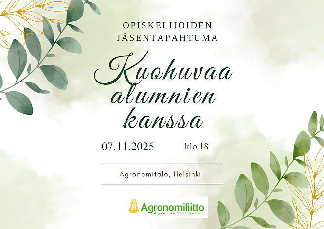 Ilmoittautuminen on päättynyt. Peruutuspaikkoja voit tiedustella: opiskelijat@agronomiliitto.fi