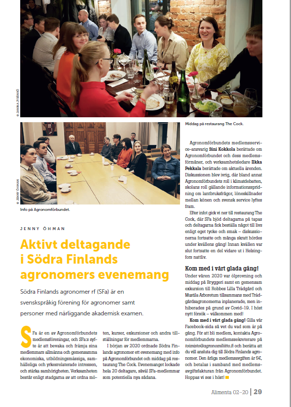 Kom med i Södra Finlands agronomer! Medlemsavgiften är 7€.